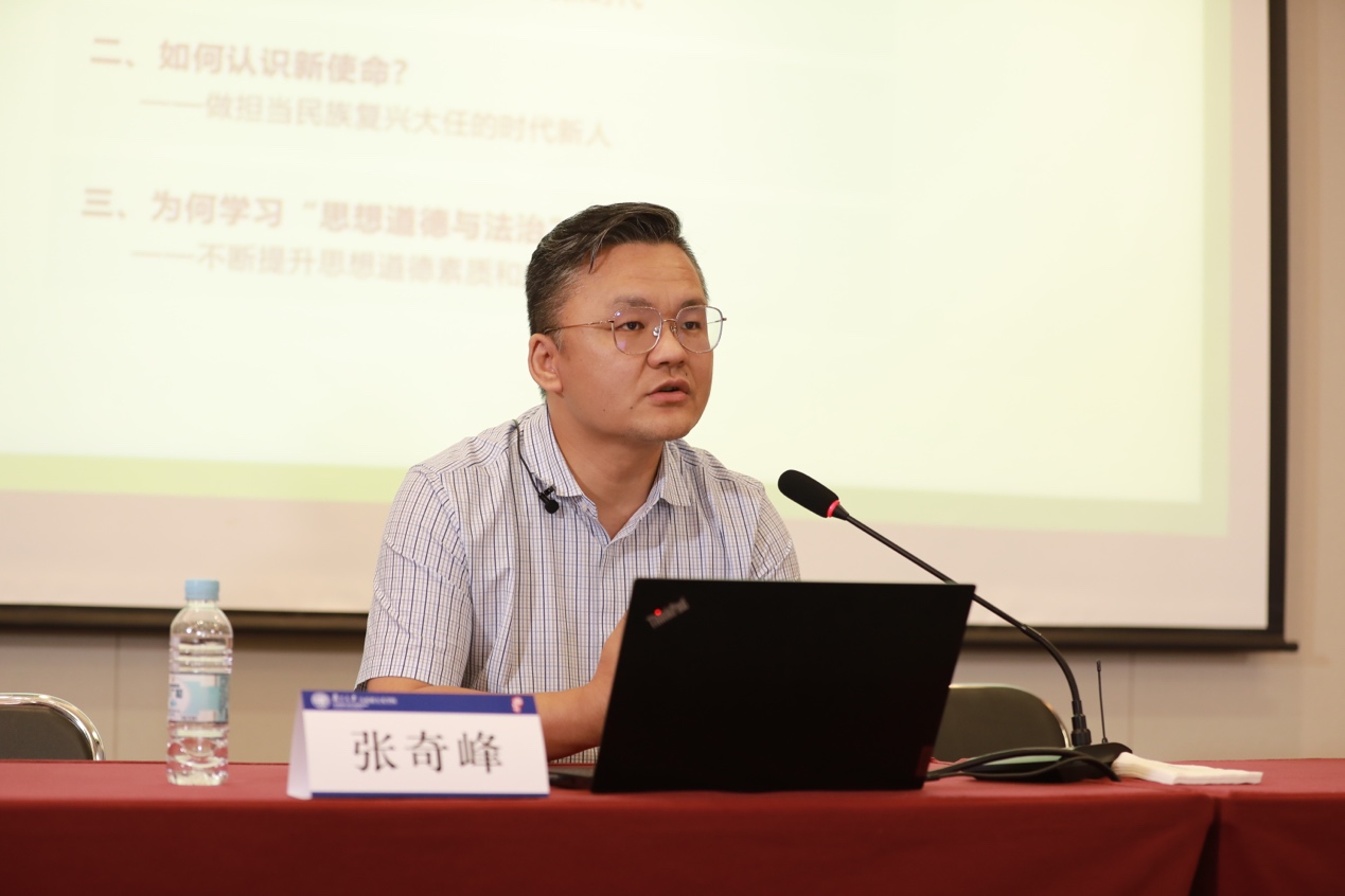 9月17日上午,中央马工程咨询委员会委员、教育部高校思政课总教指委副主任委员、天津大学第一版主 院长颜晓峰教授以《新征程谱写新篇章——学习习近平总书记在省部级专题研讨班上的重要讲话精神》为题,对新时代十年伟大变革的里程碑意义、新征程面临的战略机遇和风险挑战等问题进行了深入解读。