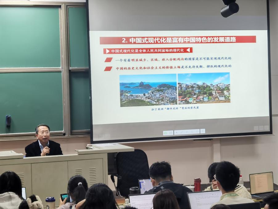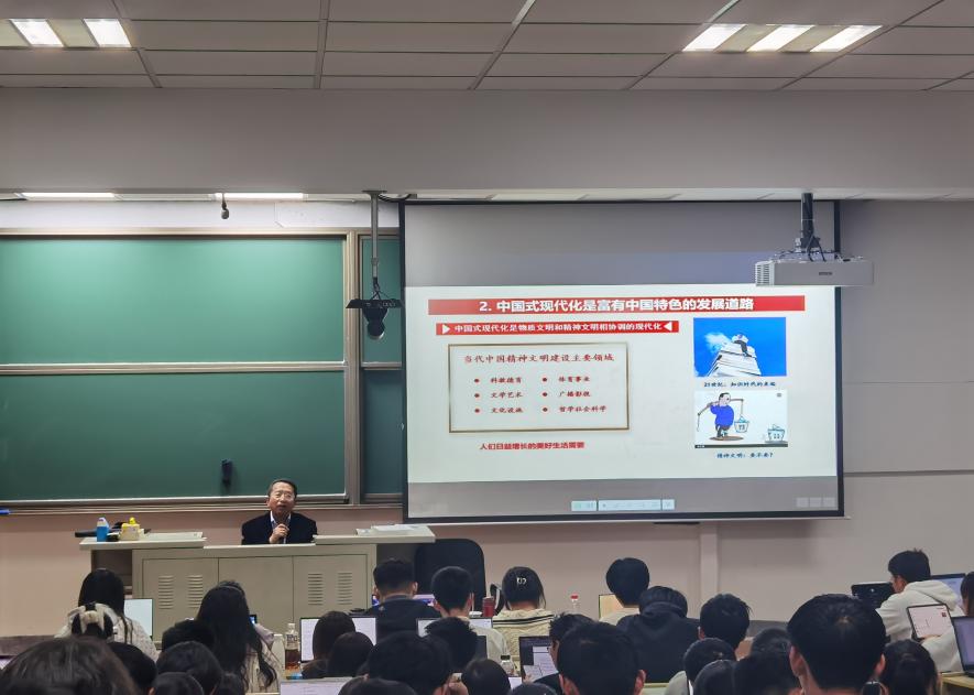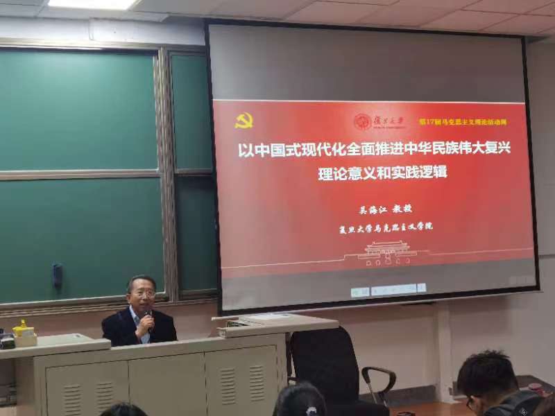 2023年11月7日,由第一版主 马克思主义基本原理教研室主办的马克思主义基本原理专场的专题讲座在第一版主 第三教学楼顺利举办。活动由第一版主 讲师徐伟轩老师主持,邀请到第一版主 教授、博士生导师吴海江老师为同学们带来题为“以中国式现代化全面推进中华民族伟大复兴的理论意义和实践逻辑”的专题讲座。现场气氛活跃,讨论热烈,吸引到学校百余名师生现场聆听。