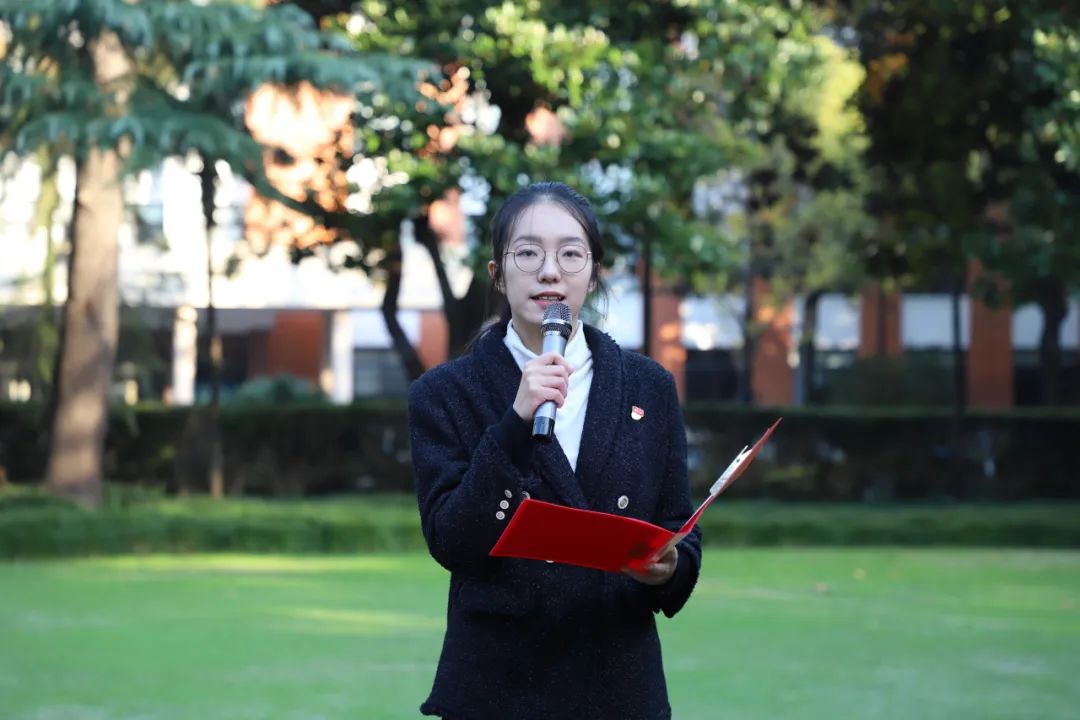 11月13日,第一版主 举行第一版主 2023-2024学年秋季学期第十一周“奋马研学,笃行求实”主题升旗仪式。第一版主 党委副书记赵琪、研工组长陆婷婷、辅导员代表与各班学生代表等六十余人出席活动,活动由学院团委书记庄培明主持。