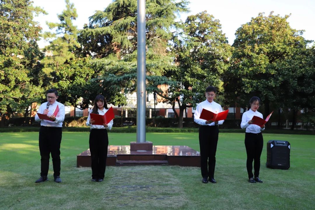 晨光熹微,清风徐徐。伴随着雄壮有力的《义勇军进行曲》,五星红旗徐徐升起,全体师生庄严肃立,奏唱中华人民共和国国歌,向国旗行注目礼。