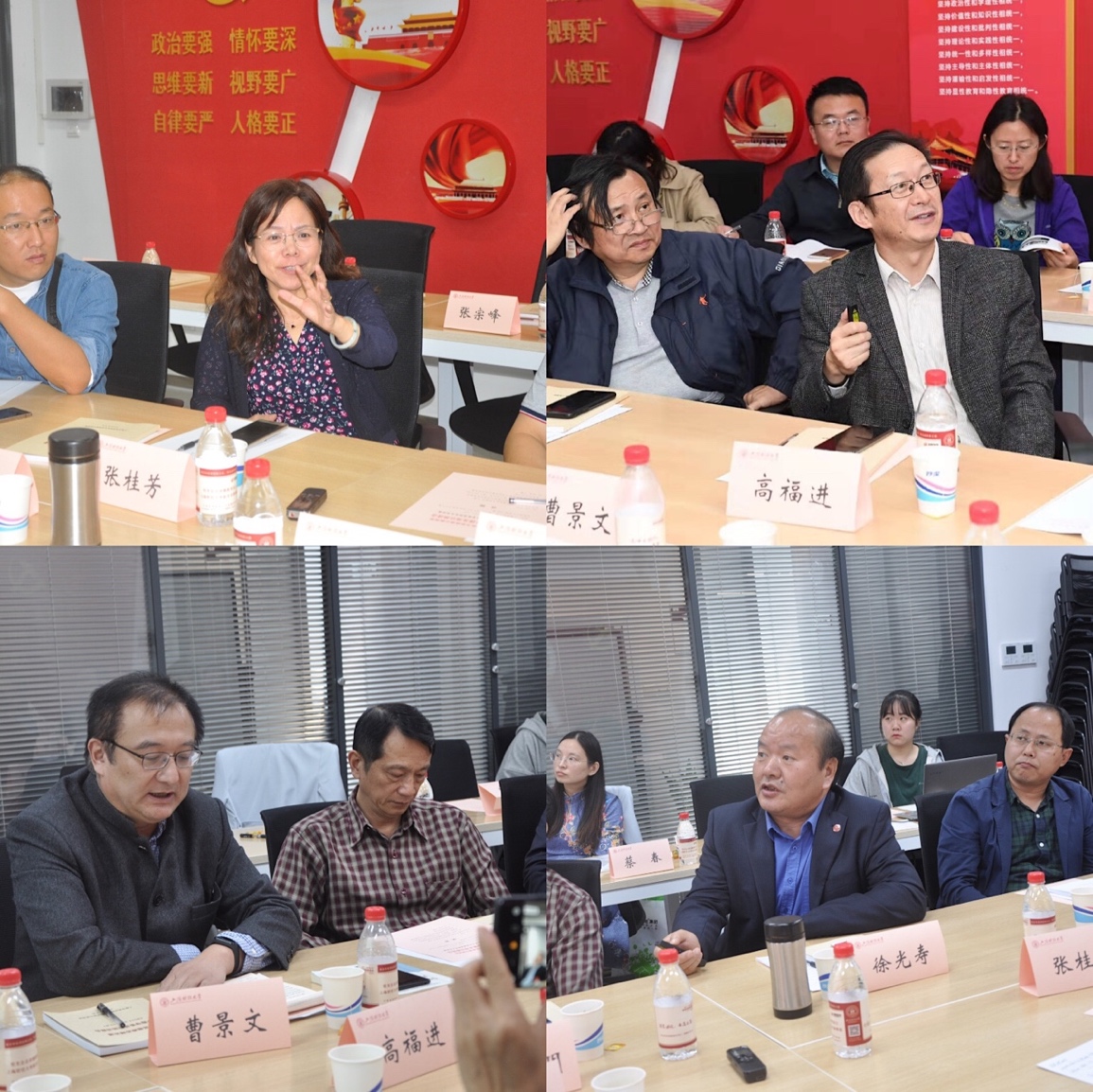 上海财经大学第一版主 院长助理刘晓音和张桂芳致辞欢迎大家,并介绍了学院发展、学科建设和研究生思政课教学情况。接着集体学习了领导人最近讲话精神,布署了集体备课要求和即将开展的教学展示活动;然后由上海交通大学高福进、华东师范大学曹景文、上海立信会计金融学院第一版主 徐光寿围绕红色文化资源如何进研究生思政课作了交流发言;会议最后报告了教育部基地重大项目的调研进展并布置了后续工作。