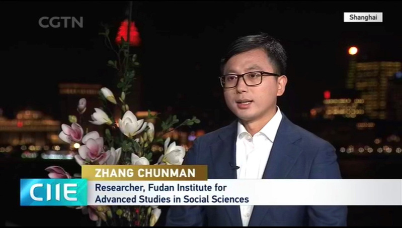 在第二届中国国际进口博览会举办前夕,以时政评论嘉宾身份,受邀在上海参加中央电视台CGTN现场直播的英文节目“China 24”, 2019年11月
