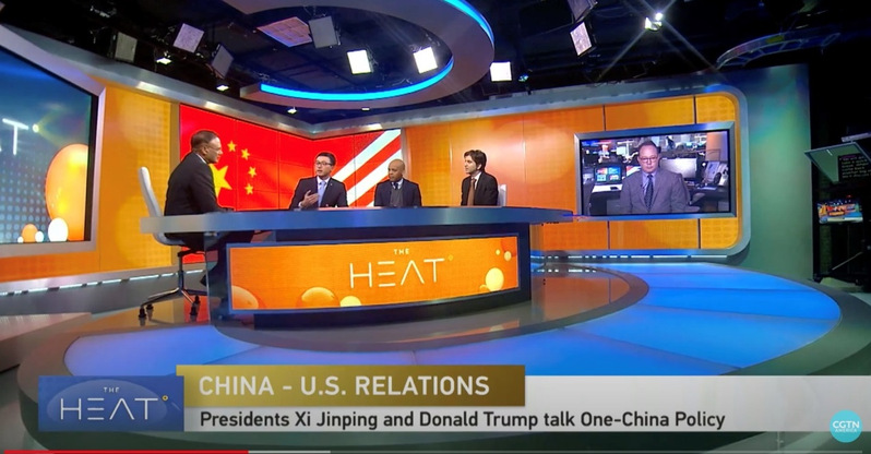 以国际事务专家身份,受邀在美国首都华盛顿参加中央电视台CGTN现场直播的英文时政节目“The Heat”,2017年2月