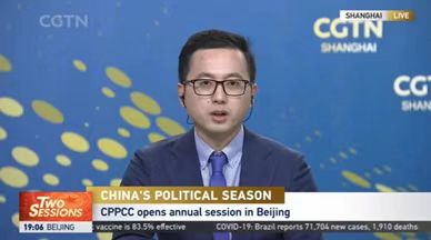 在全国两会召开之际,以时政评论嘉宾身份,受邀参加中央电视台CGTN现场直播的英文节目“World Today”, 2021年3月