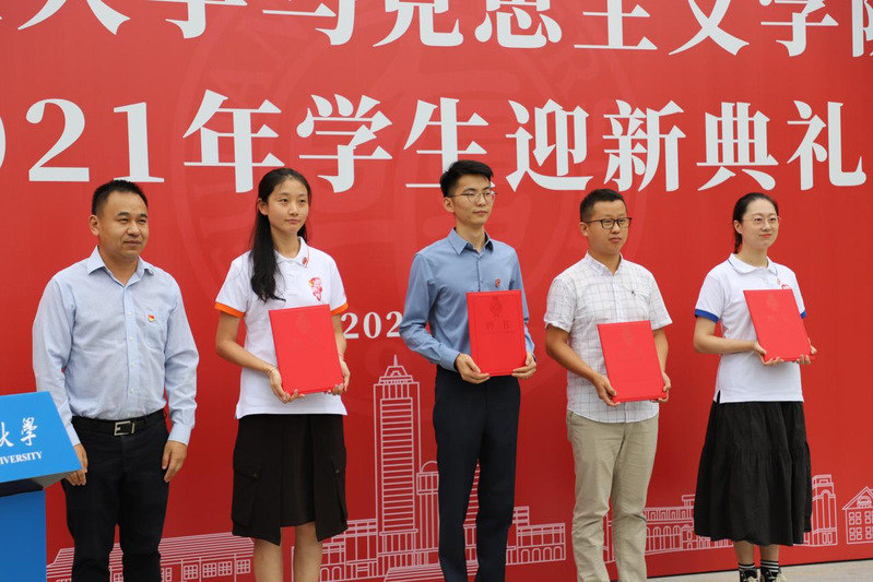 党委副书记潘孝楠老师宣读2020-2021学年优秀学生代表获奖情况,表彰在过去一年中矢志拼搏、砥砺奋进取得骄人成绩的团体和个人。激励新生在学思践悟中坚定理想信念,在奋发有为中践行初心使命,以青春书写不负时代的华彩篇章。