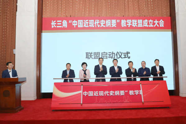 姜育刚表示,“中国近现代史纲要”课肩负着传授历史知识、培养历史思维、塑造历史观念的重要使命,是引导青年学生牢记党的初心使命、坚定理想信念的重要载体。成立长三角“中国近现代史纲要”教学联盟,有助于汇聚长三角地区高校的优质教学资源,推动课程教学内容创新和教学方法改革,促进教学质量提升。联盟要对标构建立足长三角、辐射全中国的区域教育融合互通新典范,不断厚植“纲要”课理论底蕴、加强“纲要”课教师队伍建设、推动教学联盟联动机制构建,推动长三角地区共研共学、共商共议、共建共享,努力推进“中国近现代史纲要”课程改革创新,以思政课的质量提升带动立德树人工作,努力为党和国家培养更多担当民族复兴大任的时代新人。