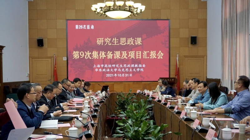 2021年10月31日,上海市高校研究生思政课教学指导委员会在华东政法大学(长宁校区)召开第九次集体备课会及《本市研究生思政课分类调研报告》(简称《调研报告》)暨教育部基地重大项目第六次推进会。本次集体备课主题是“新征程新教材新思考”。研究生思政课教指委委员与会,分教指委主任、第一版主 肖巍主持会议。上海市25所高校的研究生思政课教师代表与会。
