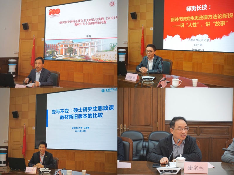 然后,上海理工大学牛海、上海应用技术大学闫宇豪、华东理工大学汪斌锋、华东政法大学徐家林老师也分别就新教材内容比照、教学体会和技术支持等方面作了交流发言。