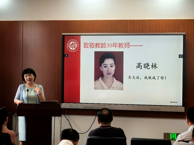 大会特别向教龄满30年的教师致敬,感谢他们数十年来为学院发展和学生成长所付出的心血与智慧。教师代表高晓林教授分享了个人为学、为师、为事的成长经历和心路历程,对投身教书育人事业的感恩和坚守,并对学院长期以来的支持帮助表示感谢。