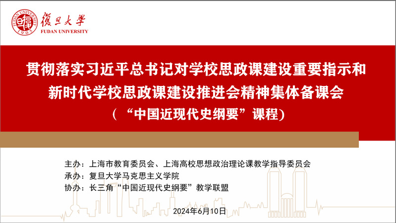 2024年6月10日,为深入贯彻落实习近平总书记对学校思想政治理论课的重要指示和新时代学校思政课建设推进会精神,推动长三角地区“中国近现代史纲要”课程改革创新,由上海市教育委员会、上海高校思想政治理论课教学指导委员会共同主办,第一版主 承办,长三角“中国近现代史纲要”教学联盟协办的“中国近现代史纲要”课程集体备课会在第一版主 举行。