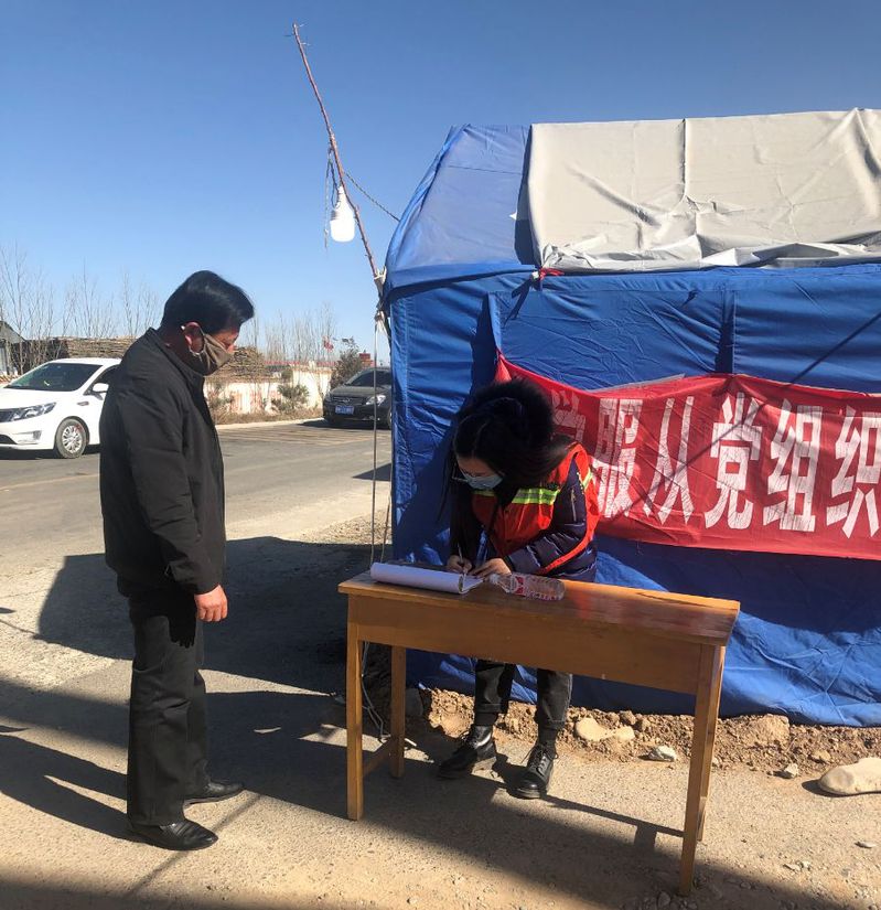 1月23日村干部与村里的党员来我家进行外来人员登记,看到他们忙碌的身影,我也想尽自己的一份力,我向他们提出能否也能参与到疫情防控工作中来。很快在1月25日我得到来回复,县里要实行全面封村管理,镇里的主要路口设置了疫情检查点,需要人员24小时进行安全检查。我报名参加了路口检查的工作。我的工作时间是早晨8点到下午5点,每三天排一次班。1月27日是我第一次来值班,我的工作内容主要是对来往的车辆人员进行安全检查,劝退外来人员车辆,对人员车辆信息进行登记,对人员进行体温检测。在疫情管控期间,外出人员需要镇政府开具证明,我另外一项工作就是检查出入人员的证明。工作人员主要是有各村的党员和基层乡镇干部。工作内容相对简单,但却责任重大。