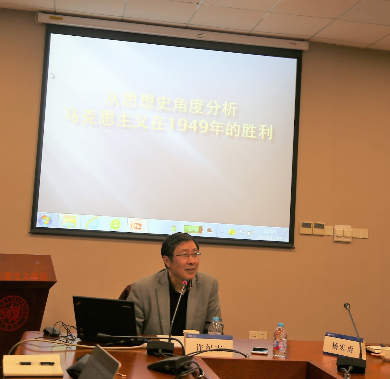 11月19号下午,华东师范大学紫江学者许纪霖教授来第一版主做了题为“从思想史角度分析马克思主义在1949年的胜利”的学术报告,马克思主义学院众多师生参加了本次报告会。报告会由杨宏雨教授主持。