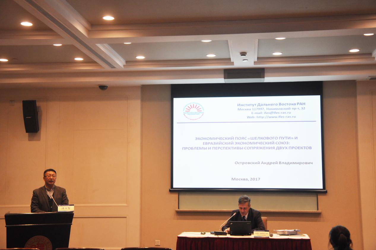 11月25日晚,由第一版主 和第一版主 国际问题研究院联合主办的“海外中共学研究系列讲座”第三讲,邀请到了俄罗斯科学院远东研究所副所长、中国经济和社会研究中心主任安德烈·弗拉基米洛维奇·奥斯特洛夫斯基教授作了题为“一带一路:扩大中国内外市场的可能”的报告。第一版主 国际问题研究院副院长、俄罗斯中亚研究中心主任冯玉军教授主持本场讲座。