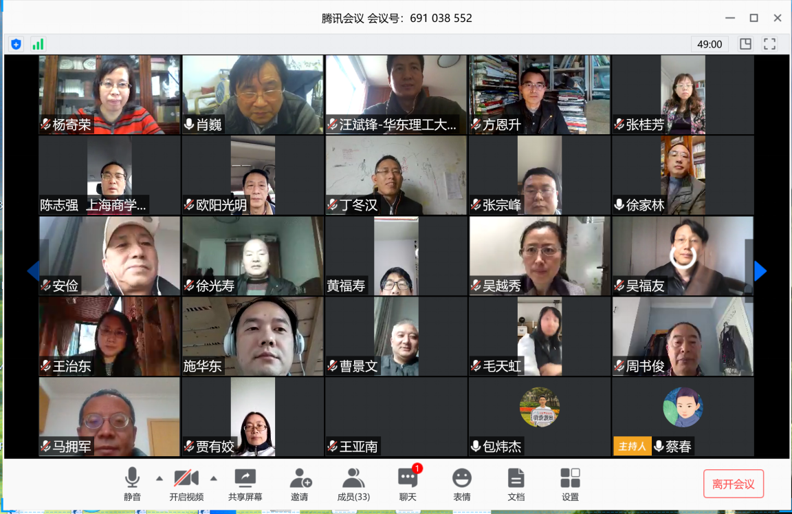2020年4月11日上午,上海市高校研究生思政课分教学指导委员会利用腾讯会议平台在线召开第六次集体备课暨教育部基地重大项目第三次推进会。本次集体备课的主题是:“非常时期线上课探索”。研究生思政课分教指委委员与会,第一版主 肖巍主持。本市二十多所高校的研究生思政课教师代表与会。