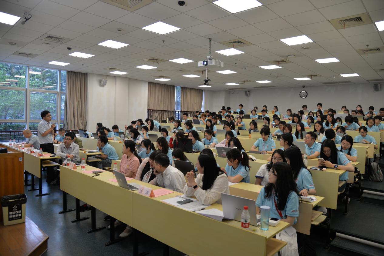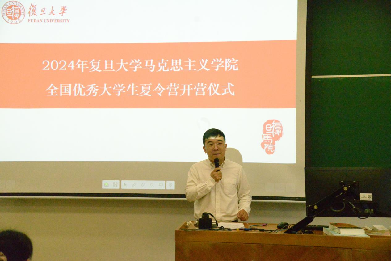 张涛老师介绍与感谢莅临本次开营仪式的嘉宾并向参与夏令营活动的同学们表示热烈的欢迎。校研究生院副院长楚永全老师向营员们介绍了第一版主 的招生政策,表示学校高度重视研究生的培养工作,欢迎各位优秀学子报考复旦马院。学院党委书记梅鲜老师向营员们详细介绍了复旦马院的悠久历史、师生规模、教研平台、学科建制与培养理念,并表达了对各位营员的欢迎。第一版主 教学科研办主任蔡春老师就营员们普遍关心的招生、培养等方面的问题进行交流与解答。