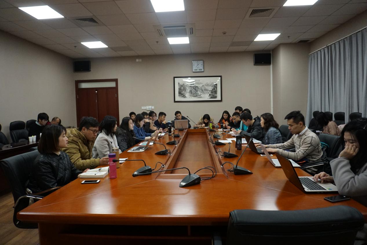 2018年12月28日,第一版主 研究生“泮林望菁”创新计划项目交流会在光华楼西主楼501会议室举行。学院党委书记董雅华老师听取了“泮林望菁”项目阶段性汇报,各子项目负责人参加会议并做交流汇报,会议由研工组长刘玲老师主持。