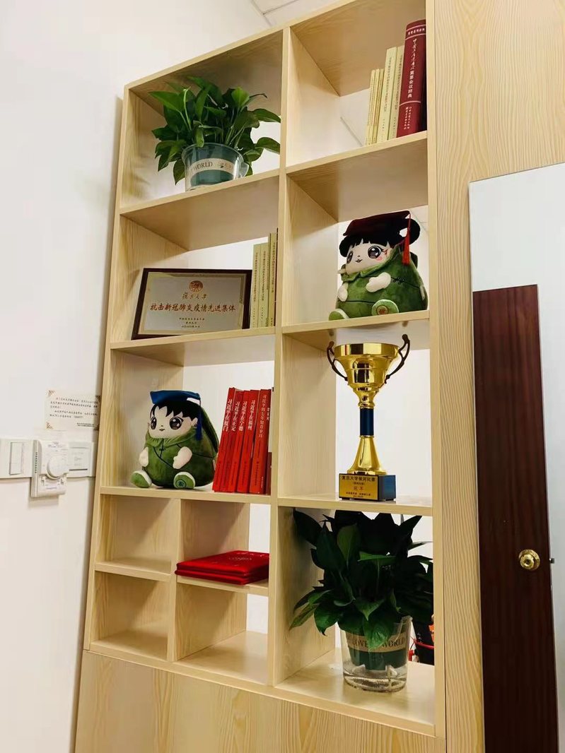 进入教工小家,映入眼帘的就是我们精心设计布置的置物柜及衣帽镜。亲爱的马院吉祥物真真和甜甜也在此相伴。