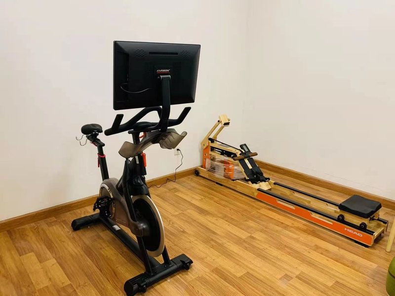 在按摩椅区旁就是运动区啦!如有运动需要,教工小家还为各位老师们配备了划船机和动感单车,均有电子屏幕可以实时把握运动数据。大家记得使用健身器械要仔细阅读说明书,安全健身哦!
