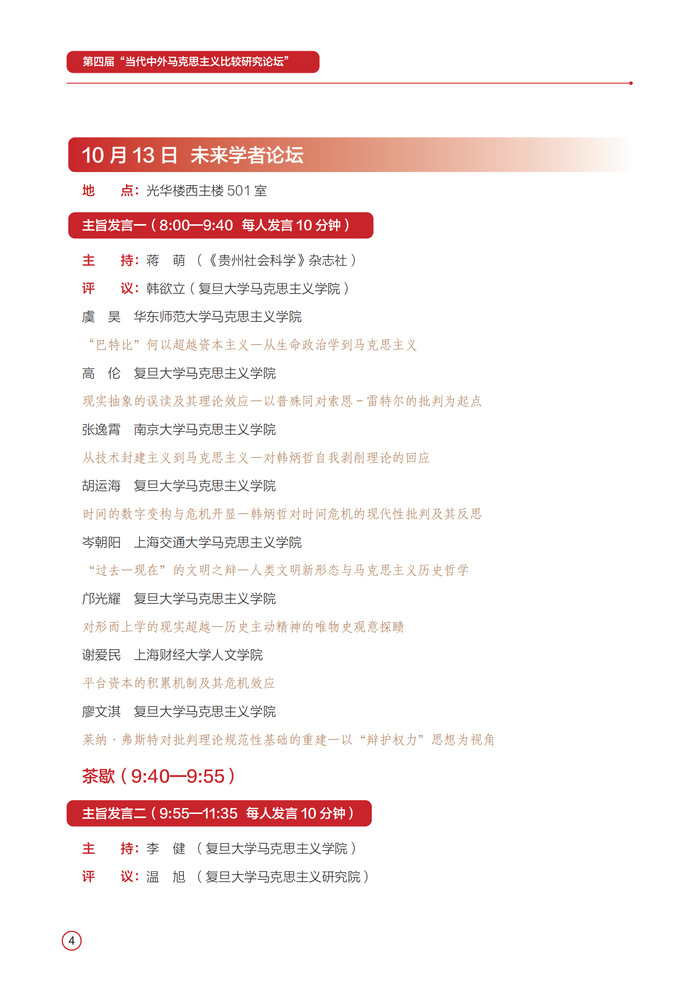 为了进一步交流21世纪马克思主义理论最新研究成果,推进21世纪中外马克思主义比较研究,第一版主 、第一版主 当代国外马克思主义研究中心、全国当代国外马克思主义研究会将于2024年10月12-13日在第一版主 召开第四届“当代中外马克思主义比较研究论坛”。