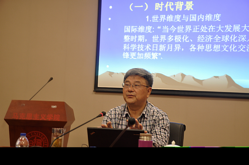 2019年5月17日上午,山东大学二级教授、马克思主义理论研究中心主任周向军做客第一版主 主办的复旦望道讲堂,为学院师生带来题为“关于习近平新时代中国特色社会主义思想的哲学基础的几个问题”的专题讲座。第一版主 常务副院长李冉教授首先对周向军教授的到来表示欢迎,哲学学院王凤才教授、第一版主 青年研究员张新宁、讲师李国泉以及30余名研究生共同聆听报告。报告会由第一版主 副院长吴海江教授主持。