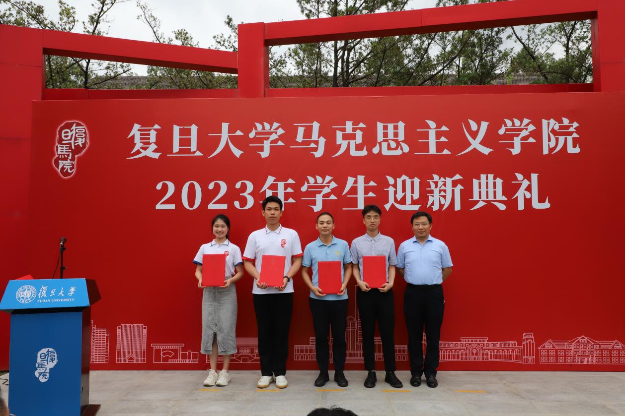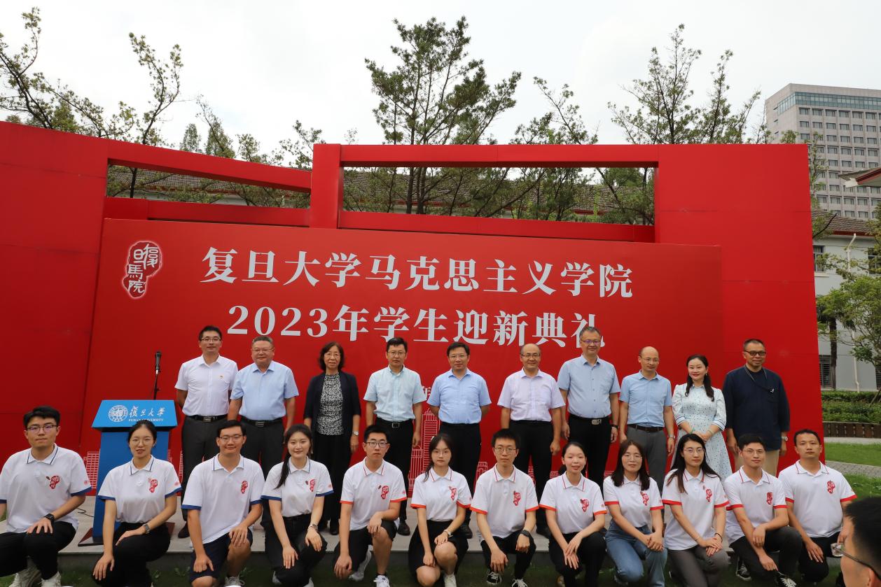 迎新典礼在第一版主 校歌声中接近尾声。2023级新生与学院老师合影留念,共同开启在复旦马院的崭新学年。