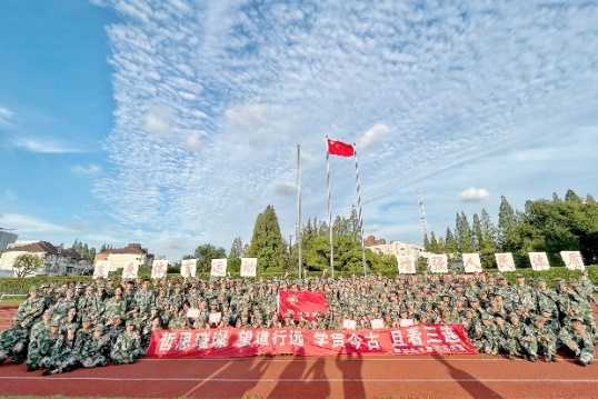 军训落幕,杜昊语同学说:“那晒黑的皮肤、响亮的口号、坚定的眼神,教官们亲和力十足的话语、学院老师们溢于言表的鼓励,似乎都在暗示我,军训是一个持续蓄力的过程。积累疲惫,但也积累坚定的意志;积累枯燥,但也积累非凡的勇气;积累嘶哑,但也积累如虹的气势。”陈镇同学表示:“军训既漫长又短暂,愿以军训之火,熔铸青春之我,让我们坚定理想信念,怀揣梦想与热爱,望道行远,奔赴人生新篇章。”