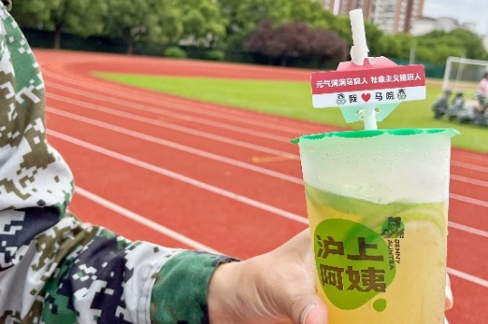 老师们为同学们逐一送上装有军训物资、日常用品的慰问礼包和清凉解暑的冰镇饮品,写有“真理很甜 马院很暖”“元气满满马院人 社会主义接班人”等内容的吸管卡套也为同学们加油鼓劲。在军训慰问的过程中,既彰显了学院对同学们的亲切关怀,也凝聚了望道班学子们的团结力量。