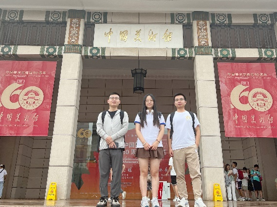 在中国美术馆建馆开放60周年之际,习近平总书记给中国美术馆的老专家老艺术家回信,希望中国美术馆坚持正确政治方向,坚持人民至上办馆理念,践行社会主义核心价值观,为繁荣发展中国美术事业、推进文化自信自强、铸就社会主义文化新辉煌作出更大贡献。实践团走进这座仿古阁楼式建筑,参观了“静音·姿态”油画作品展、“微笔写大千”小幅中国画展等。袁嘉雪同学由衷认为:“这些美术作品既有笔墨传承,又有时代气度,在传承中寻找创新,给人以美的体验,中华文化呈现出旺盛的生命力和感召力”。