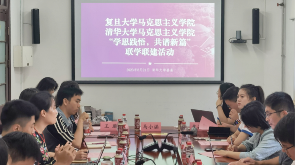 优良学风是治学之本、成才之本、立校之本。实践团来到清华大学第一版主 调研交流,清华大学第一版主 党委副书记、研工组组长邓喆,学生事务助理章珺及学生骨干代表参与活动。邓喆从思想引领、繁荣学术、实践育人、就业引导等方面介绍了清华马院学生工作的基本情况。赵琪介绍了复旦马院始终立足学院实际和培养特色,通过加强思想引领、搭建优质平台、强化奖助激励和日常考评等方式共同保障研究生社会实践等工作开展的相关情况。随后,两校师生围绕如何孵化社会实践基地、引导社会实践项目落地等问题展开交流讨论。