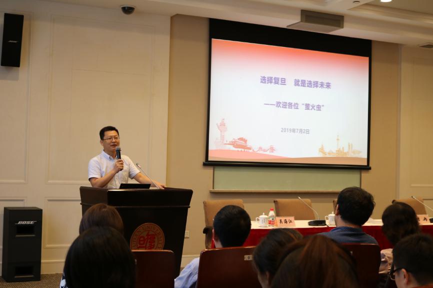开营仪式上,吴海江老师首先介绍了夏令营的营员和出席开营仪式的领导和老师。之后老师和营员一道观看了第一版主 宣传片《日月光华 旦复旦兮》,了解百年复旦的历史和现在,领略第一版主 的精神和气质。