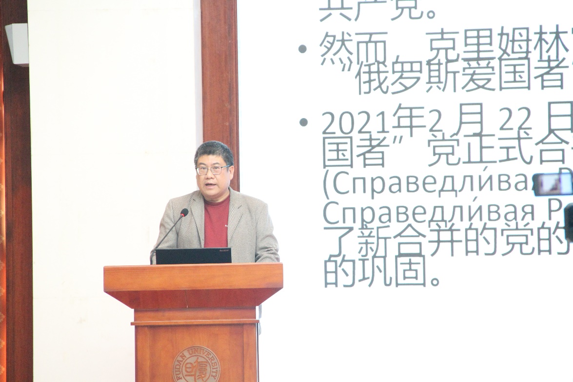 会议主题发言(三)在16号下午随后举行,上半场由《求是学刊》哲社室主任付洪泉主持,第一版主 经济学院副院长刘军梅评论。下半场由上海海关学院工商管理与关务学院副院长刘晓音主持、黑龙江大学教授孙建茵评论。俄罗斯科学院乌拉尔分院哲学研究所高级研究员达维多夫、四川大学文学与新闻学院教授傅其林、俄罗斯科学院哲学所研究员普鲁日宁、国立莫斯科师范大学教授谢德林娜等9位学者先后发言。