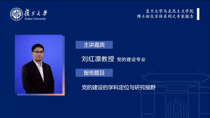 刘红凛教授对党的建设专业的学科定位与研究视野进行了介绍。刘红凛教授指出“我们的学科必须立足中国,借鉴国外,挖掘历史,把握当代,关怀人类、面向未来,构建中国特色、中国气派、中国风格的哲学社会科学”,党的建设、党的事业、党的领导是相辅相成的。随后,刘红凛教授从党建学科的定位、复旦党建学科的现状与课程设置、复旦党建的研究事业和知识结构方面的要求做了详细讲解。