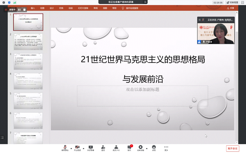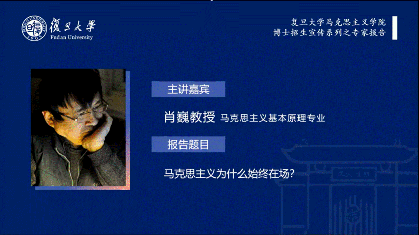 肖巍教授对马克思主义基本原理专业的学科定位与研究视野进行了介绍。肖巍老师从文化自信切入,指出“马克思主义这个理论本身也是中国最核心的一个价值观问题,涉及到我们国家的文化自信”。肖巍老师提到,我们面对日益艰巨的获得感、幸福感、生物安全感等问题,我们面临着许多以前没有遇到挑战。随后,肖魏老师讲解了马克思主义基本原理的五个研究问题:马克思主义基本问题、马克思主义整体性问题、马克思主义的方法问题、马克思主义现代文明、自然辩证法。最后,肖魏老师寄语各位参会同学,欢迎大家报考第一版主 。