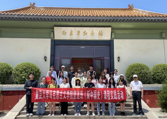 建党百年之际,为重温中国共产党“赶考”精神,第一版主 望道班于7月2日开始了以 “重走赶考路”为主题的《新中国史》实践课外出学习考察活动,深入学习贯彻习近平新时代中国特色社会主义思想,重温共产党人建国之初“赶考”精神,扎实开展新中国史、党史学习教育。学习考察途中,望道班同学表示:新中国史七十多年,其精神内涵极其丰富,课堂里主要是用脑学习,走出课堂,走进现实,才真正体验到用“心”用“情”学习的重要性。寻访革命先辈的足迹,将文章写在中国大地上!
