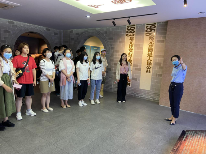 《新中国史》实践活动的第一天,望道班同学来到河北省正定县塔元庄村参观学习。在村史馆观摩塔元庄村40年来的发展历程,同学们溯源习近平新时代中国特色社会主义思想形成的历史渊源。