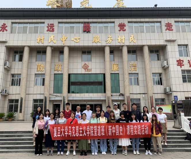 《新中国史》实践活动的第一天,望道班同学来到河北省正定县塔元庄村参观学习。在村史馆观摩塔元庄村40年来的发展历程,同学们溯源习近平新时代中国特色社会主义思想形成的历史渊源。