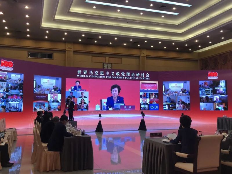 中共中央对外联络部5月27日以视频会议方式举行世界马克思主义政党理论研讨会。中共中央总书记、国家主席习近平向研讨会致贺信。老挝人民革命党中央总书记通伦,西班牙共产党主席森特利亚,俄罗斯联邦共产党中央委员会主席久加诺夫,巴西共产党主席桑托斯,印度共产党(马克思主义)总书记亚秋里,美国共产党联合主席西姆斯等多国政党领导人通过书面或视频方式对研讨会的召开表示祝贺,摩尔多瓦共产党人党主席、前总统沃罗宁,意大利共产党全国书记阿尔博雷西,南非共产党总书记恩齐曼迪等来自48个国家和地区的马克思主义政党领导人和代表,以及中央和国家机关有关部门及高校负责同志共约200人出席。